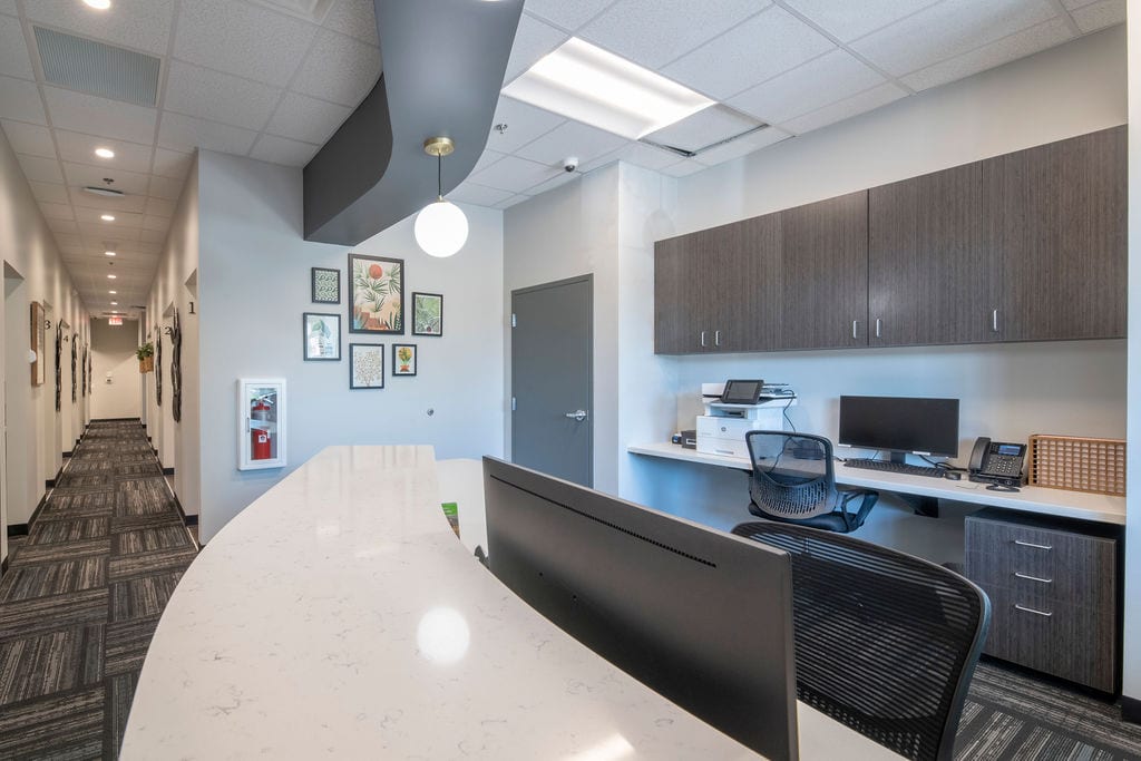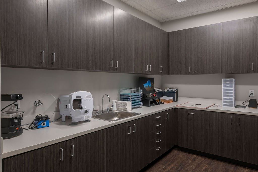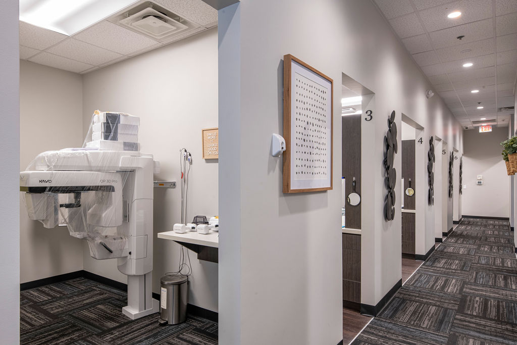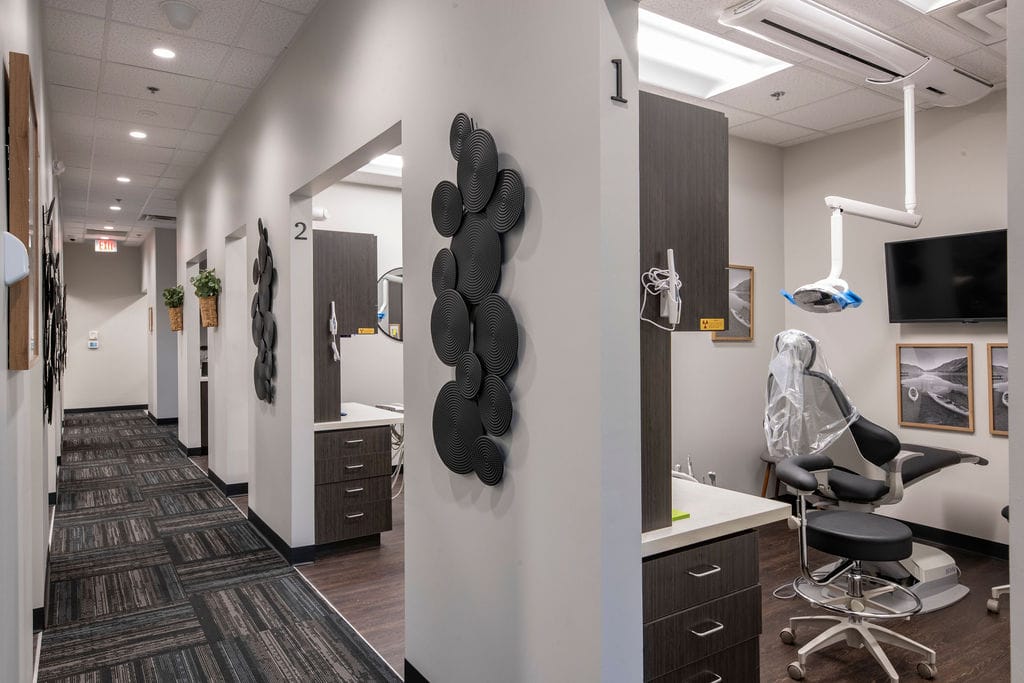 Andrew General Contractors performed the tenant build-out for Ideal Dental’s 2,052 SF location in Orlando, FL. The lobby area provides an inviting feel with the curved reception desk, unique light fixtures, and green feature wall. Treatment rooms contain glass bowl pedestal sinks and energy-efficient LED lighting.