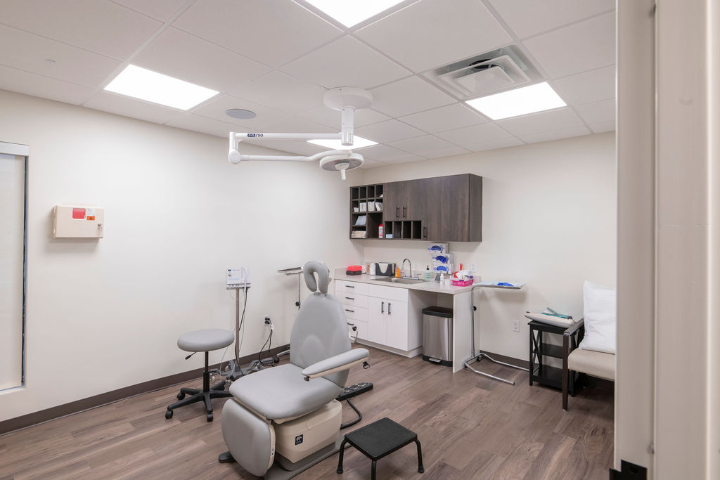 Andrew General Contractors performed comprehensive renovations for the new Knight Dermatology Institute location in Winter Park, FL. The existing 4,886 SF building received a complete interior renovation, creating space for five exam rooms, six operating rooms, a Mohs lab, and office space. The project scope included an LED lighting package designed specifically for dermatological exams, LED surgical lighting, and custom exam and operating room millwork. In addition to energy-efficient lighting, HVAC, and plumbing fixtures, spray foam insulation was added to the roof system to enhance the building envelope and reduce energy costs.