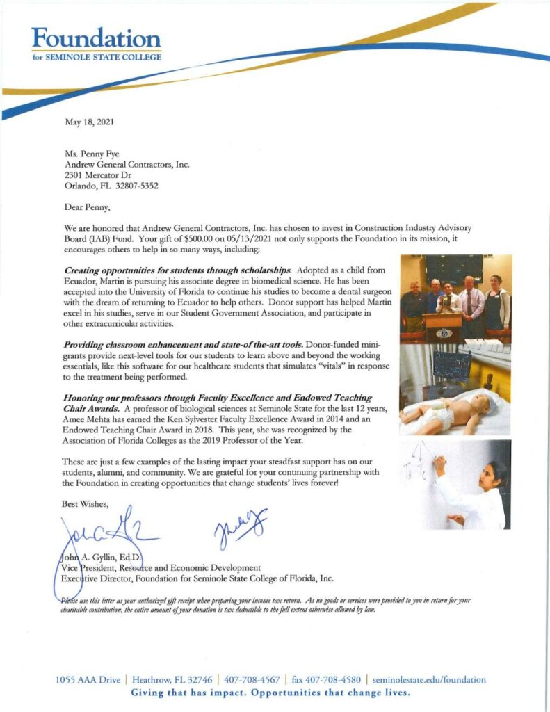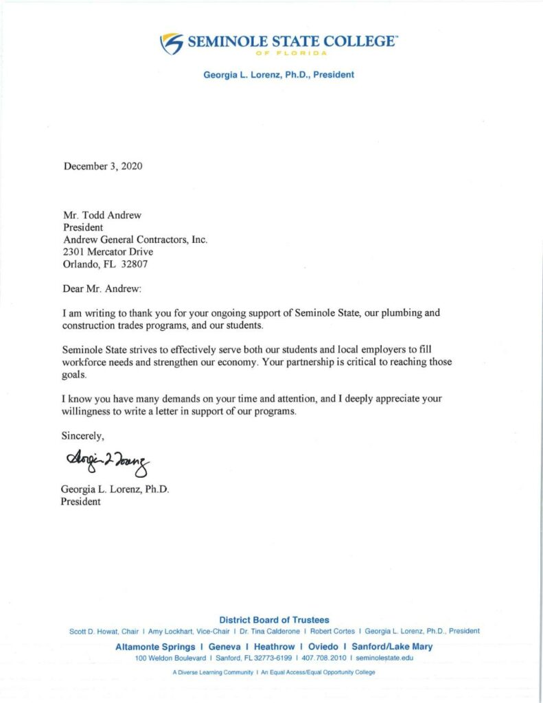 News Seminole State College Partnership August 11, 2021August 24, 2021 Andrew General Contractors is a proud supporter of Seminole State College.